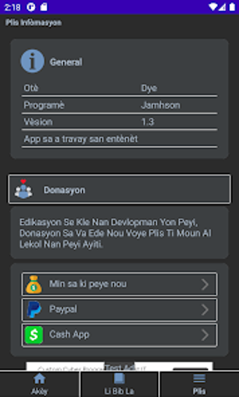 Bib Kreyol é um aplicativo educacional projetado para dispositivos Android, focado em fornecer acesso a livros e materiais de referência. Com um tamanho reduzido de aproximadamente 3 megabytes, ele se destaca por sua leveza e rapidez, permitindo uma instalação sem ocupar muito espaço no armazenamento do dispositivo. Além disso, a aplicação funciona de maneira eficiente sem a necessidade de conexão com a internet, tornando-a ideal para uso em qualquer lugar.